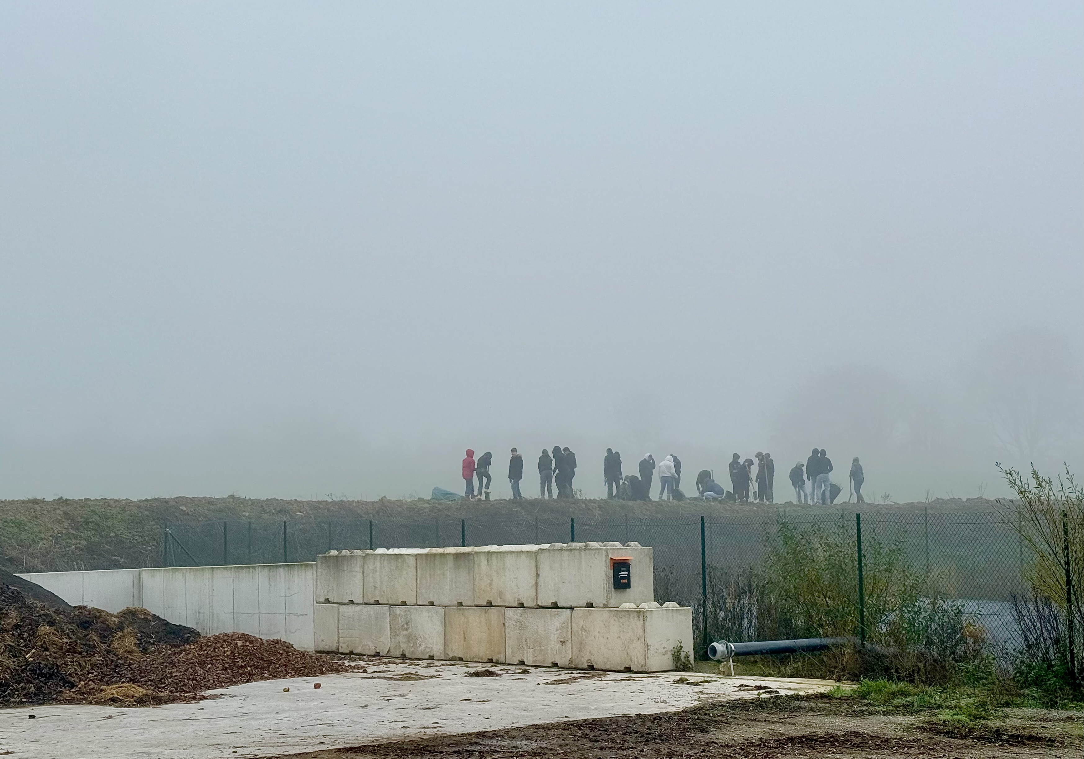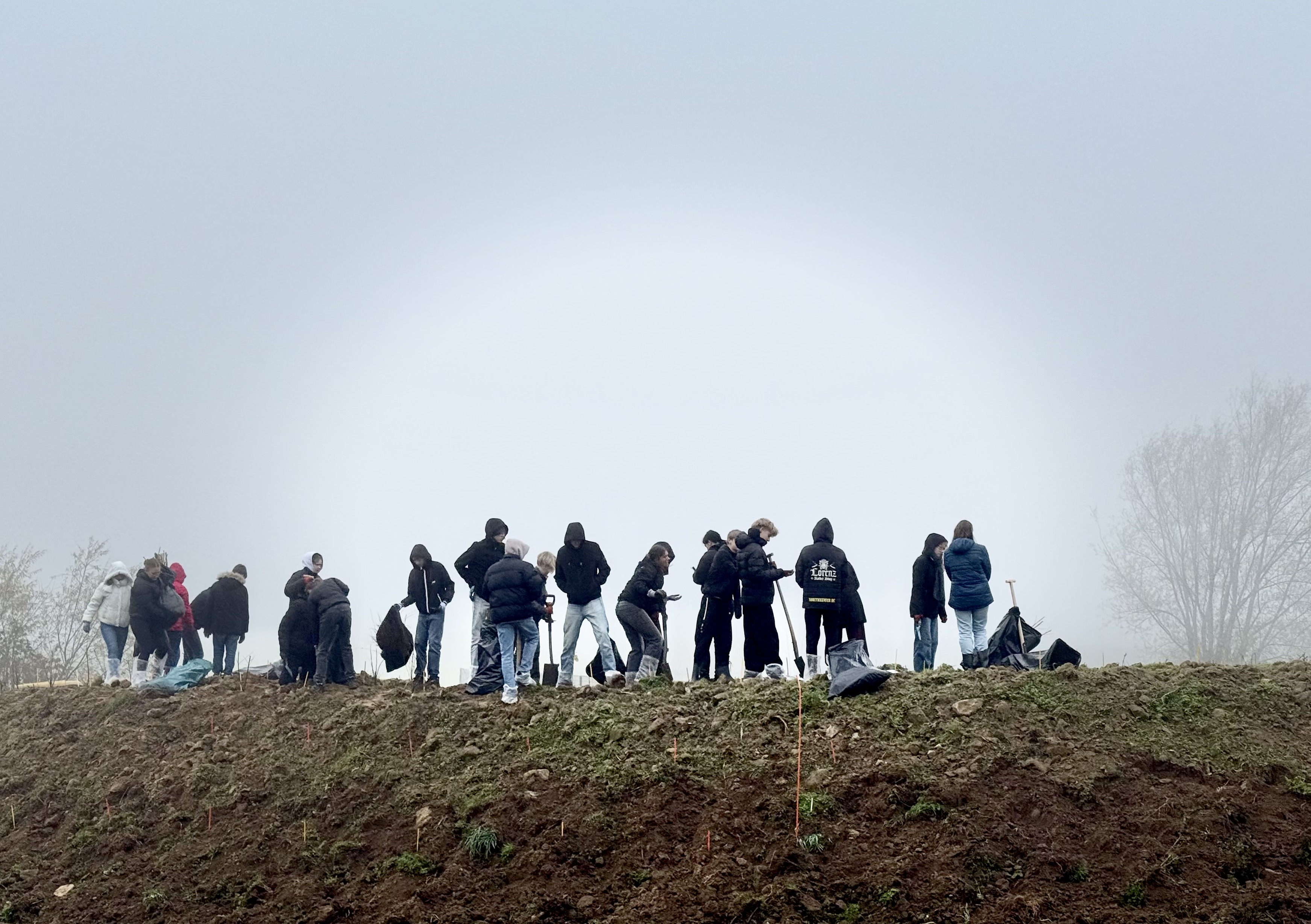 "Es hat viel Spaß gemacht, aber es war schon sehr kalt", war am Ende die fast einhellige Meinung der 21 Schüler:innen aus der Klasse 9a, die am 7. November bei dauerhaftem Bodennebel und 6°C einen 50 Meter langen Erdwall mit 250 Sträuchern bepflanzt hatte.