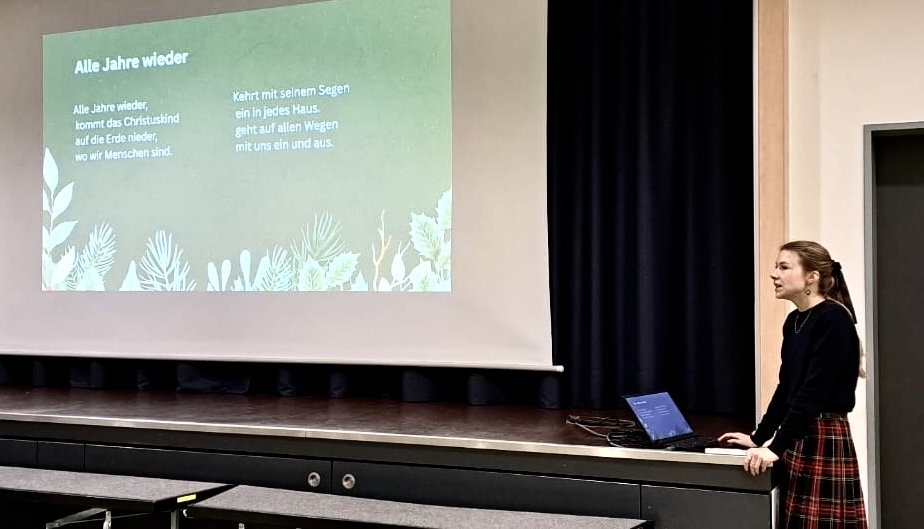 Das Seminarfach "Intermedialität und Intertextualität" von Theresa Meier bot mit Schulpianist und Seminarfachmitglied Julius Haupt am letzten Tag vor den Ferien ein Weihnachtsliedersingen in der zweiten großen Pause an. Die Mensa war voll und die Stimmung fantastisch.