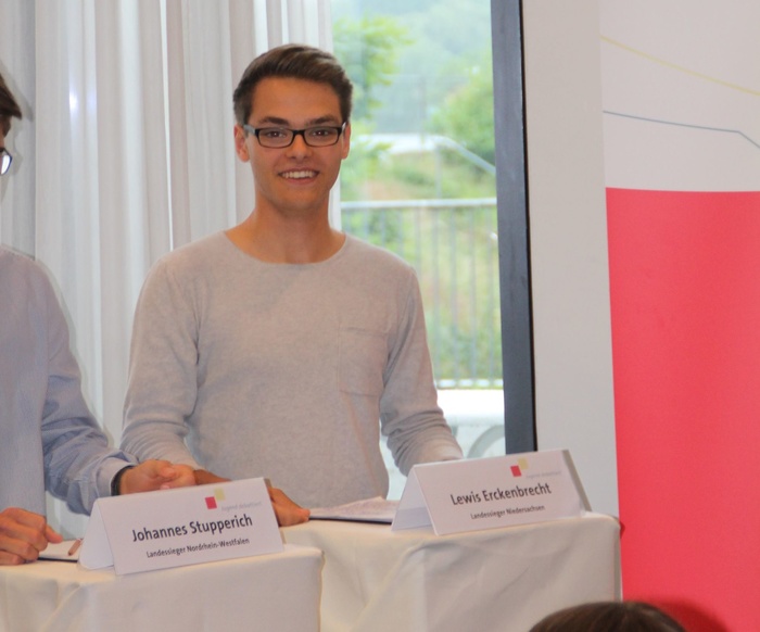 Nach einer Mittagspause startete für die Altersgruppe II die „Rückrunde“ um 15:00 Uhr zur Streitfrage „Sollen auf Bundesebene Volksbegehren und Volksentscheid generell eingeführt werden?“. Lewis vertrat in dieser Debatte von der Position Contra 2 aus die Gegenposition und konnte die Jury mit seiner hohen Sachkenntnis überzeugen. Siegerehrung Um 17 Uhr begann die mit Spannung erwartete Siegerehrung der Bundesqualifikation 2016. Würde Lewis vielleicht zu den besten zwölf Debattanten aus fast 200.000 teilnehmenden Schülerinnen und Schülern bundesweit gehören? Nachdem die sechs besten Debattanten aus der Altersgruppe I (Jahrgangsstufen 8-10) bekannt gegeben worden waren und somit die ersten vier Finalisten für das Bundesfinale feststanden, war die Siegerehrung für die Altersgruppe II an der Reihe. Platz 6 und Platz 5 gingen an Landessiegerinnen aus Hessen und aus Baden-Württemberg. Jetzt blieben nur noch die vier Finalplätze übrig, welche die Aufnahme in den Alumni-Club von „Jugend debattiert“ garantieren und eine Siegerehrung durch Bundespräsident Gauck bedeuten würden. Letztlich konnten die Jury dann die Landessieger aus Hamburg, aus Hessen, aus Sachsen sowie aus Bayern am meisten überzeugen.