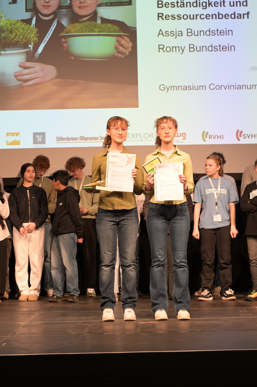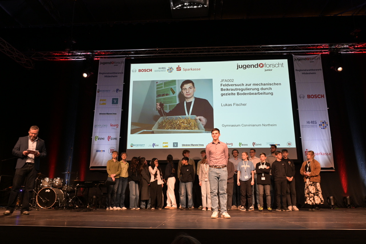 In diesem Jahr überzeugten unsere Jungforschenden trotz teilweise sehr starker Konkurrenz beim teilnehmerstärksten Regionalwettbewerb Niedersachsens in Hildesheim. Im Fachgebiet Physik in der Juniorsparte traten zum Beispiel gleich zehn Projekte an, wobei drei durch Regionalsieger aus dem letzten Jahr durchgeführt wurden. Umso mehr freuen wir uns über zwei Regionalsiege in der Juniorsparte! Die vier Jungforschenden werden ihre Projekte im April beim Landeswettbewerb in Einbeck vom 09. - 11.04.2026 präsentieren.