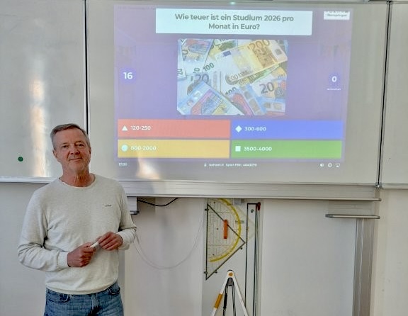 Statt regulärem Unterricht standen drei praxisnahe Workshops auf dem Plan, die wichtige Kompetenzen für den eigenverantwortlichen Start nach dem Abitur vermittelten. Herr Özkan und Herr Gareiß von der Kreis-Sparkasse Northeim gaben dabei wertvolle Tipps rund um das Thema Finanzen: von Geldanlagen wie ETFs bis hin zu wichtigen Aspekten der ersten eigenen Wohnung.
