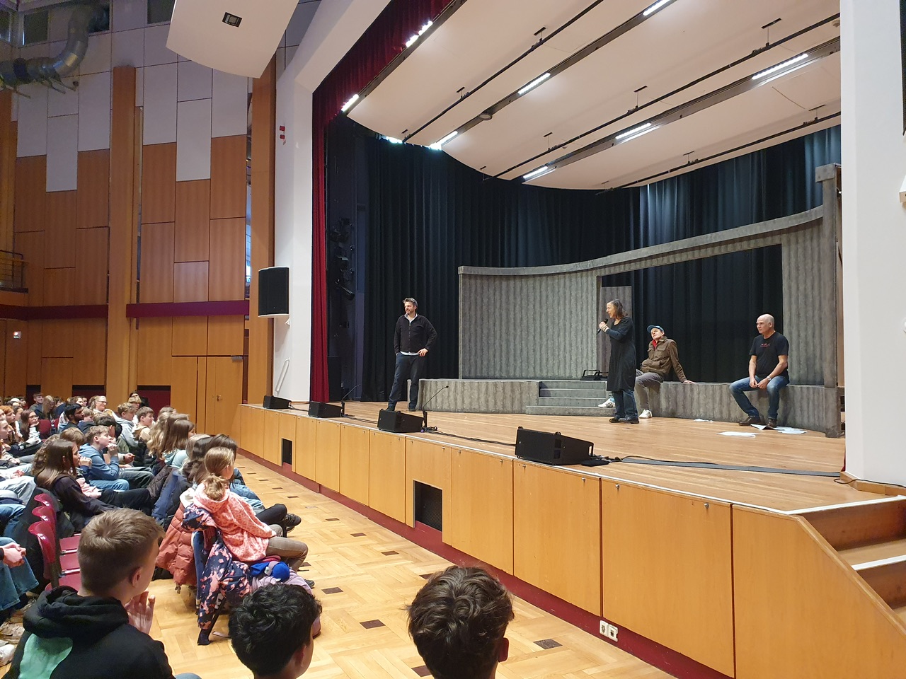 320 Corvinianer:innen der Jahrgänge 8-10 sahen am 25.2.2026 den Klassiker von Dürrenmatt. In einem kurzen Nachgespräch konnte das Publikum die Schauspieler:innen zu ihren Rollen befragen und Auskunft über den Beruf "Schauspieler:in" erhalten.