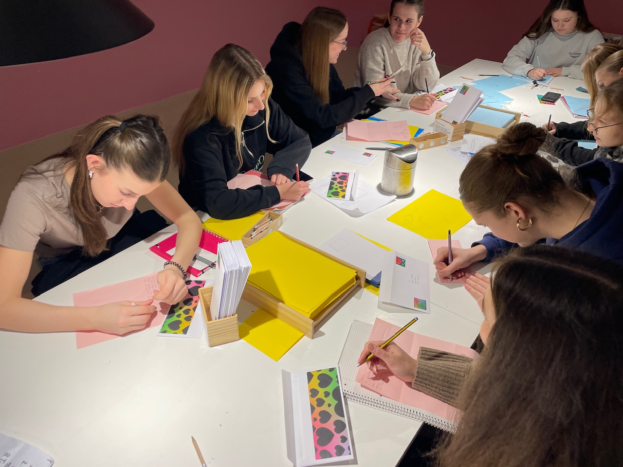 Die Schülerinnen und Schüler erhielten spannende Einblicke in unterschiedliche künstlerische Ausdrucksformen – von farbenfrohen, verspielten Skulpturen, wie den bekannten Nanas oder poppigen Mangafiguren, bis hin zu raumgreifenden Installationen oder interaktiven Stationen, an denen sie z.B. „Liebesbriefe“ schreiben und kostenlos versenden konnten. Der Museumsbesuch bot viele Anregungen für den eigenen künstlerischen Prozess und wird im weiteren Kunstunterricht aufgegriffen.