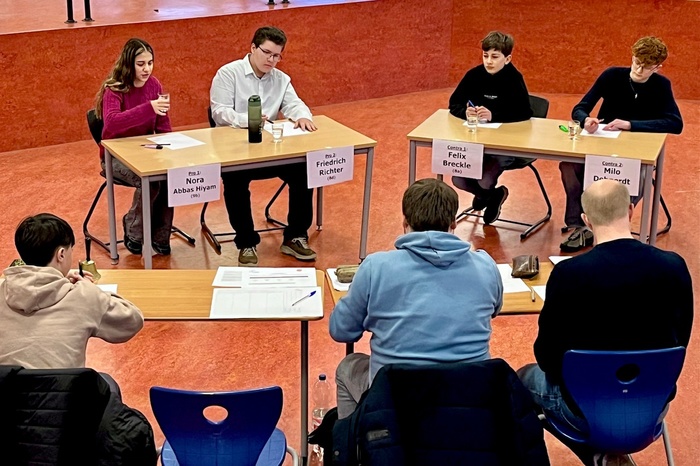 Hierbei überzeugten alle vier Debattierenden mit Sachwissen, indem die eigene, zugewiesene Position (Pro oder Kontra) engagiert dargelegt wurde. Im Wesentlichen galt es die Kontroverse zwischen der Umsetzbarkeit der Maßnahme auf der einen sowie dem Schutz der Teilnehmenden im Straßenverkehr auf der anderen Seite argumentativ zu verdeutlichen. Die Pro-Seite sah es entsprechend als geboten an, eine Führerscheinpflicht für E-Scooter einzuführen, um die Zahl der Verkehrsunfälle mit Rollerbeteiligung zu reduzieren. Dagegen argumentierte die Kontra-Seite mit Verweis auf eine erst zum 1. Januar 2026 in Kraft getretene Gesetzesänderung, durch welche klarere technische Vorgaben gemacht worden und rechtlich E-Scooter Fahrrädern im Straßenverkehr gleichgestellt worden sind.
