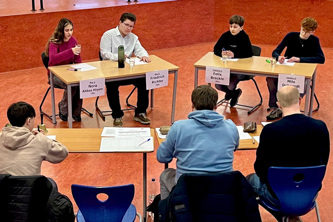 Letztlich entfachte sich eine inhaltlich auf ordentlichem Niveau geführte Debatte mit gelungenen Argumenten auf beiden Seiten, wobei die Kontra-Seite letztlich bei einer Abstimmung das anwesende Publikum aus dem Jahrgang Q2-13 mehr überzeugen konnte.