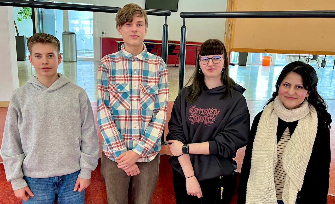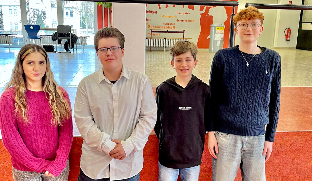 Milo, Nora, Rahma und Elias stehen im Regionalentscheid