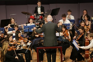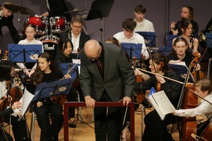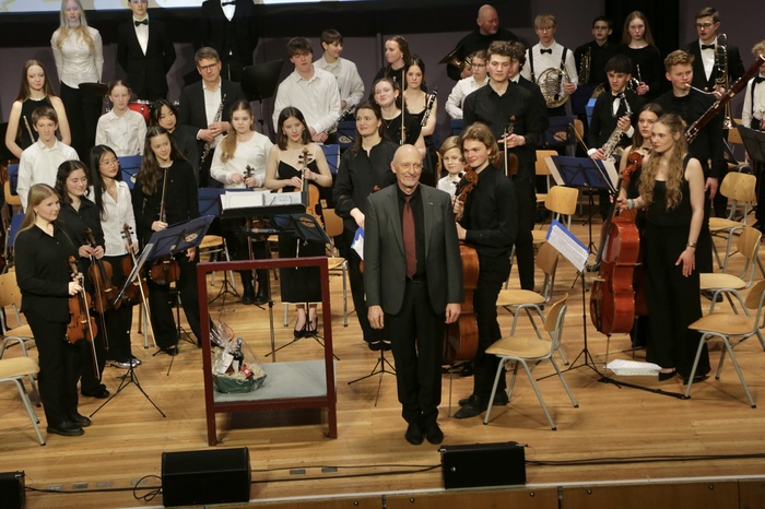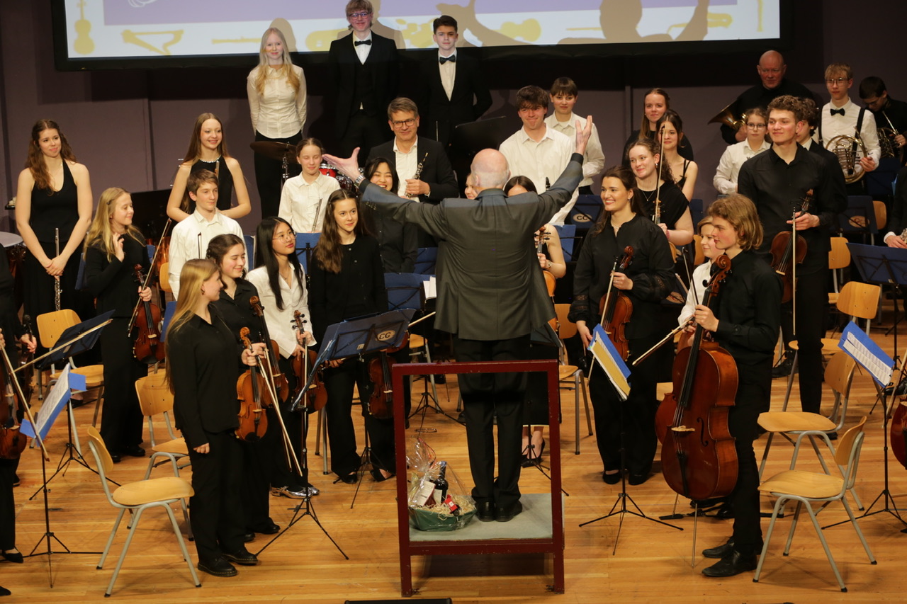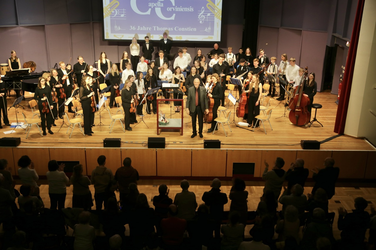 Thomas Constien, der das Orchester nach 36-jähriger Leitung zum Schuljahresende abgibt, gelang es erneut, sein konzentriertes und pointiertes Dirigat auf die fast 70 Orchestermitglieder zu übertragen. Zu recht gab es für seine Leitungsleistung Standing Ovations im Rang und auf der Empore in der ausverkauften Stadthalle an diesem Premierenabend. Beinahe gelang es dem hingerissenen Publikum durch das Erzwingen mehrerer Zugaben, den Magister Musikus erfolgreich an seiner anstehenden Pensionierung zu hindern.