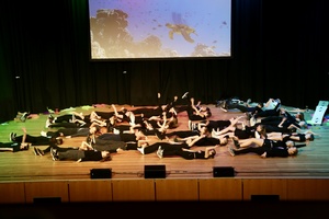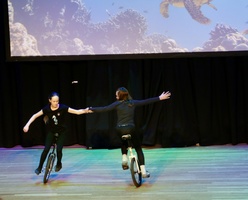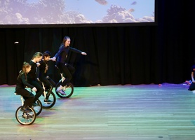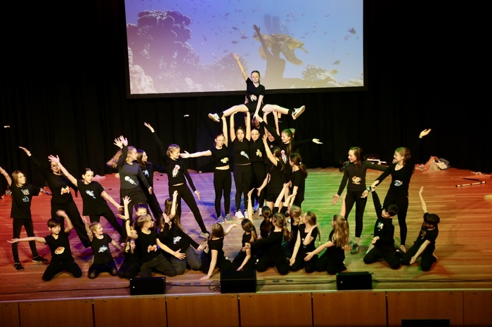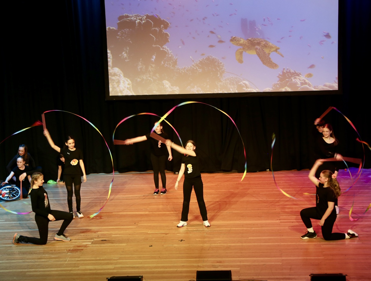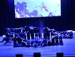 Marlene Dörnenburg ließ ihre große Zirkus-AG in eine faszinierende Unterwasserwelt abtauchen. Mit bezwingender Fröhlichkeit zeigten sie in einer wieder einmal ausgesprochen ansprechenden musikalischen und visuellen Atmosphäre ihre Zirkusfähigkeiten.