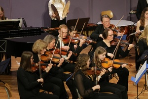 Den krönenden Abschluss bot das Corvi-Sinfonieorchester Capella Corviniensis mit einem Jubiläumsprogramm. Herausragend war der Hummelflug von Rimsky-Korsakow mit einem brillant aufspielenden Hauke Ferber am Solo-Fagott. Definitiv grandios waren auch die zwei Stücke von Schostakovisch: Ein Walzer, der mit seiner überwältigend tiefsinnig-melancholischen Melodie die Stadthalle erfüllte, was den fantastisch aufspielenden Blasinstrumenten mit Erik Meyer an einer starken Tuba und den geschmeidig und harmonisch spielenden Streichern zu verdanken ist. Der souverän bewältigte Marsch zeigte mit hohem Tempo und weitem Ambitus die überragende Professionalität des Schulorchesters, das – verstärkt mit einigen Ehemaligen und Lehrkräften – keine Wünsche offen ließ und wahrlich seines Gleichen sucht.