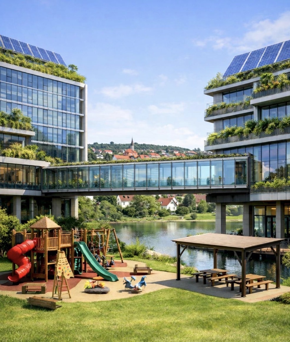 Bei den Thementagen am Corvinianum Northeim haben wir, die Klasse 8a, uns mit einer nachhaltigen Stadtplanung beschäftigt. Als erstes haben wir uns ein paar Bilder und Videos angeschaut, um zu verstehen, wie sich die Stadt entwickeln wird, wenn nicht eingegriffen wird. Wir als Klasse können jetzt direkt nicht helfen, aber wir können und wollen überlegen, wie man eine Stadt nachhaltig bauen kann. Nachdem wir uns angeschaut haben, wie man dies machen kann, haben wir angefangen, eine Karte zu planen. Es gab drei verschiedene Bereiche, wovon wir uns einen aussuchen konnten. Wir konnten unsere Schule gegen etwas ersetzen, das City Center in Northeim umbauen oder ersetzen oder auf einem Feldteil am Ende von Sudheim etwas hinbauen. Wie es aussehen soll, was es besonders geben soll und wie man die Daseinsgrundfunktionen darstellen kann, war uns überlassen. Wir alle waren in verschieden Gruppen und hatten alle verschiedene Ideen, wie man eine nachhaltige Stadt zeichnen könnte.