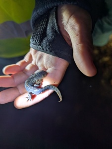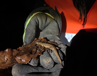 Kian und Tara (10a/8b) fanden bei 3°C und trockener Witterung am Mittwochabend 2 Molche auf der Hinwanderung.
