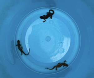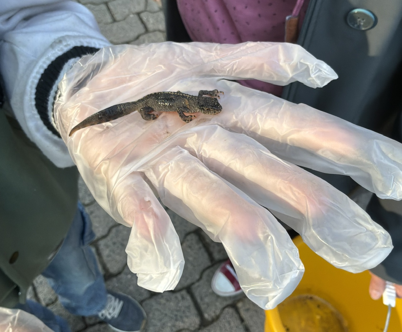 Außerdem haben wir 16 Molche und 4 Frösche aus den Eimern gerettet.
