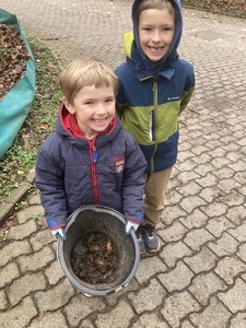 Leon und ich – unterstützt von unseren Brüdern Paul aus der Klasse 4c der LZS und Julian aus der Klasse 3a der KBS – haben heute trotz feuchter Witterung keine Amphibien gefunden.