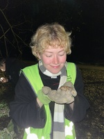 Heute Abend waren Sophia Heise, 5d und ich, Romy Hartmann, 6c bei 5°C und feuchter, windiger Witterung unterwegs, um Kröten zu sammeln. Auf der Hinwanderung brachten wir einen Grasfrosch und eine männliche Kröte und auf der Rückwanderung eine weibliche Kröte sicher auf die andere Straßenseite.