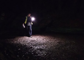 In der Nacht zum Montag fand Projektleiter Wolff bei 8°C und trockener Witterung fünf Molche und ein Erdkrötenmännchen auf der Hinwanderung und setzte zahlreiche Eimer richtig ein.