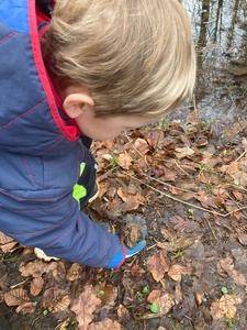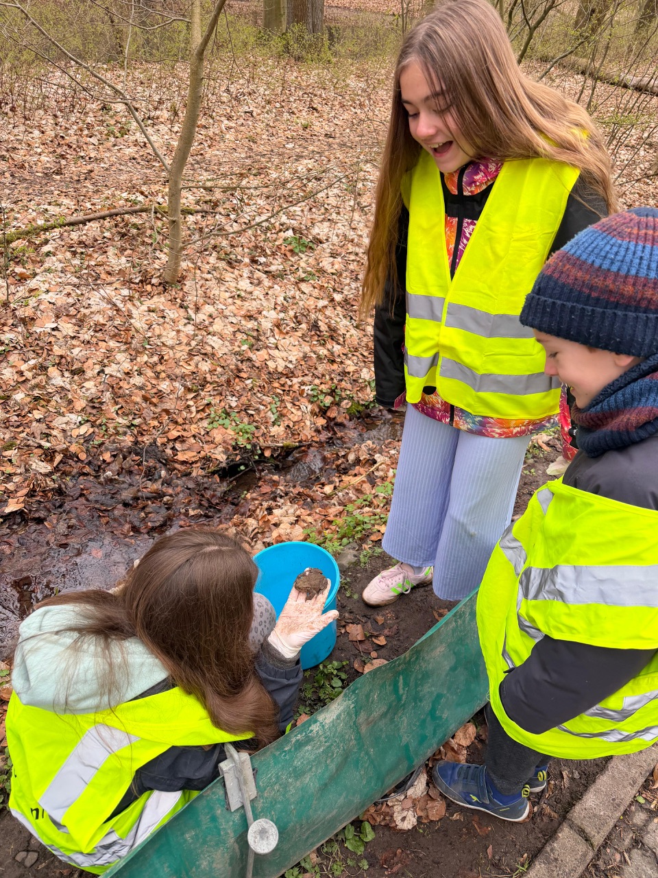 wir, Lina Müller aus der 5b, Letizia Salzmann aus der 5m vom Corvinianum und Amelie Salzmann aus der 4a Grundschule im Kirchtal Langenholtensen waren heute im Wald. Dadurch, dass es nur 2 °C waren, fanden wir nur einen Molch (es war ein Männchen) und haben ihn anschließend in den Teich gebracht. Die Eimer waren alle noch eingegraben.