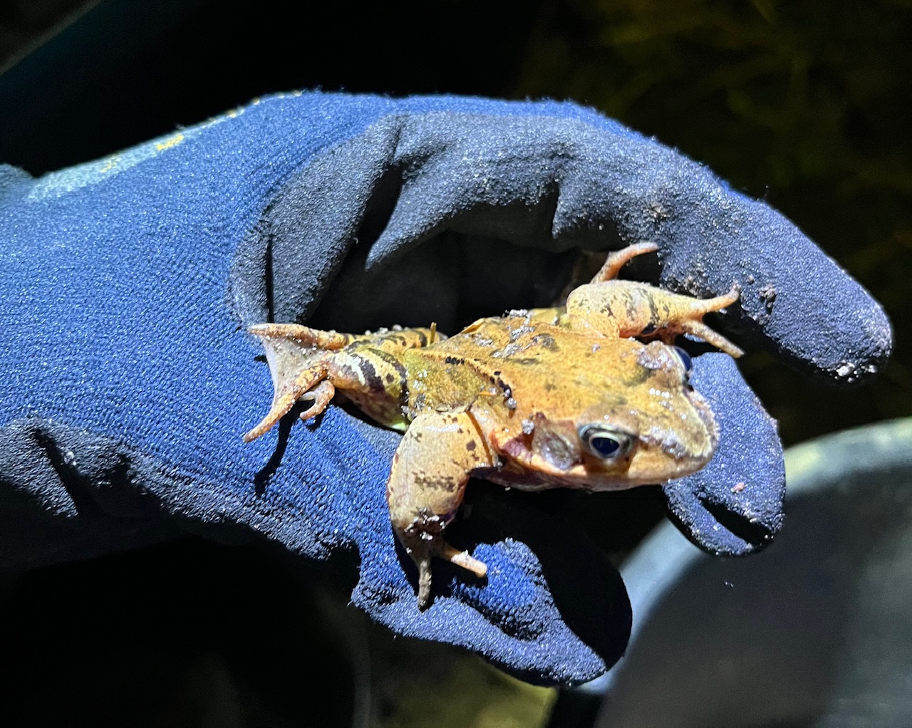 Wir haben leider nur eine männliche Erdkröte (Hinwanderung) gefunden, hatten aber trotzdem unseren Spaß!