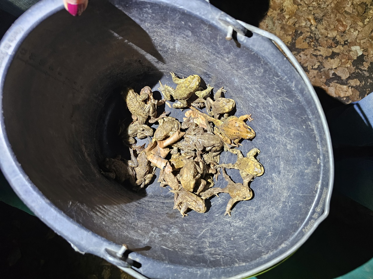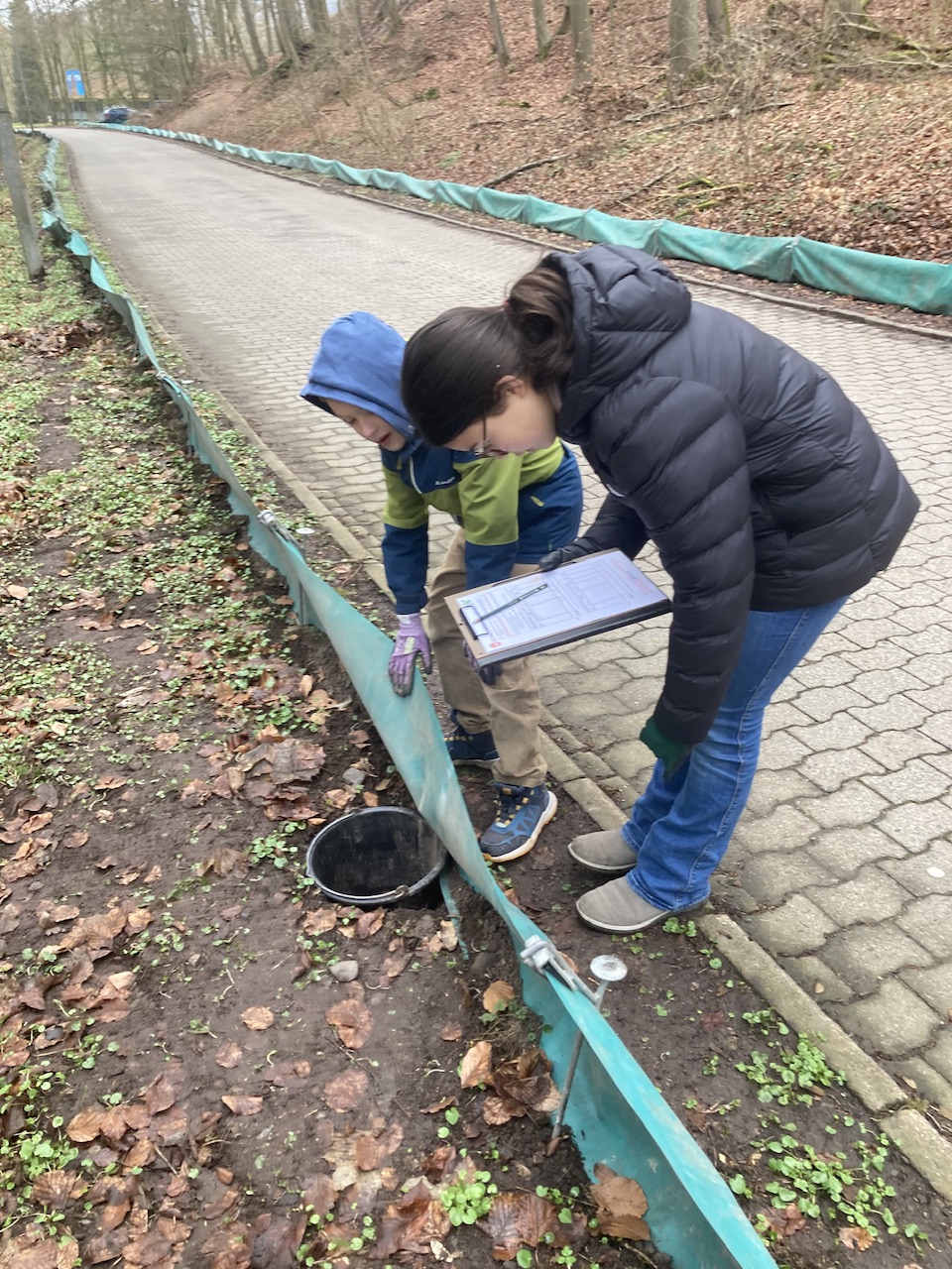 Auch wenn keine Amphibien gefunden wurden, ist das ein vollwertiges Naturschutzengagement, denn Liane und ihr Team haben vor Ort sichergestellt, dass es den Kröten gut geht. Bei 1°C und feuchter Witterung hat sich die Gruppe nämlich zuverlässig auf den Weg gemacht und sämtliche Auffangeimer kontrolliert. Vielen Dank dafür!