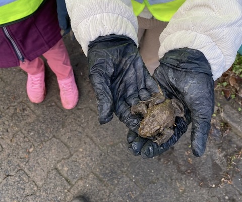Am Montagmorgen fanden Kilian und Liam aus der Klasse 5c bei kalten 3°C und Regen 4 Amphibien auf der Rückwanderung.