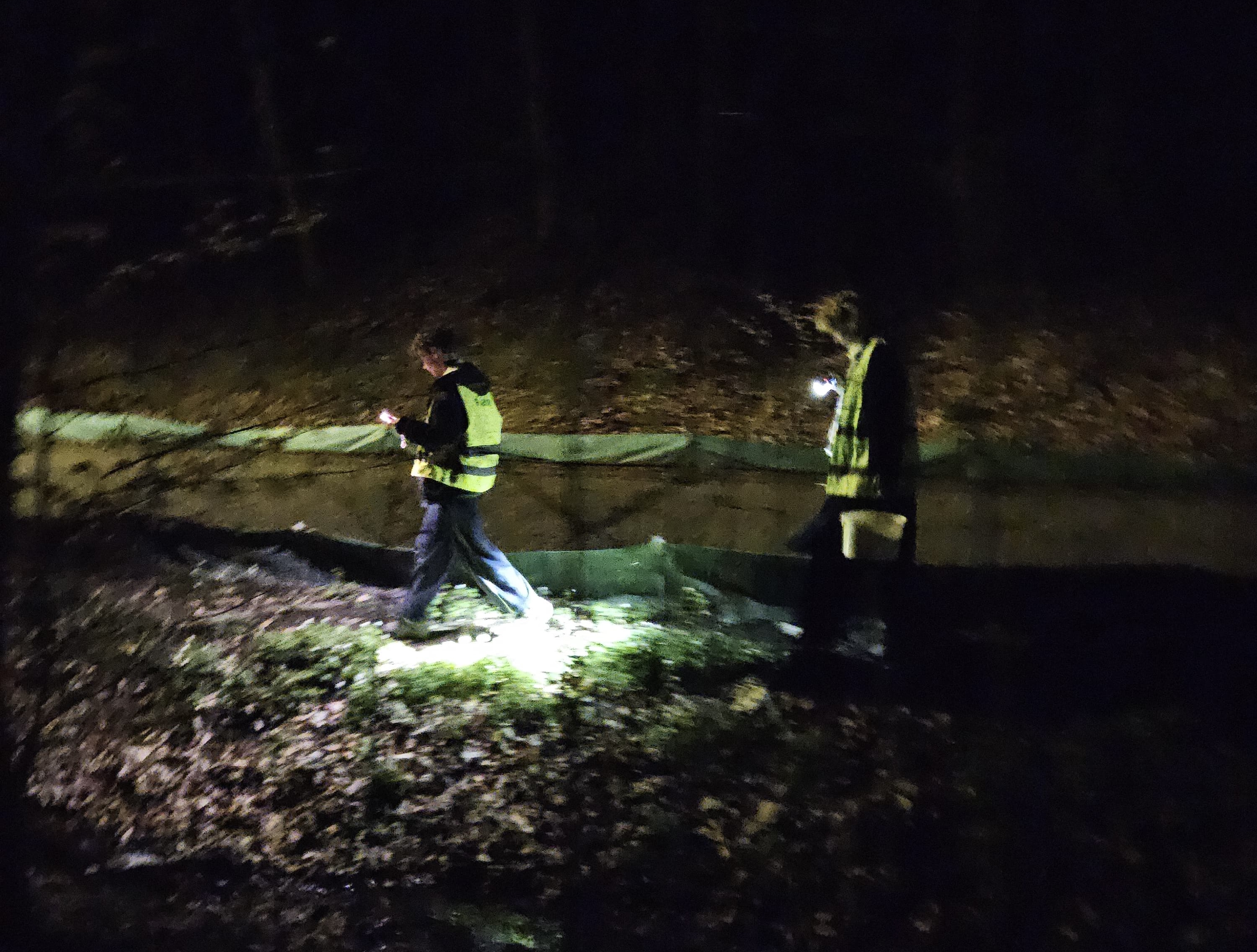 In dieser Nacht fanden Max und Viggo aus der Klasse 5e leider keine Amphibien in den Auffangeimern.
