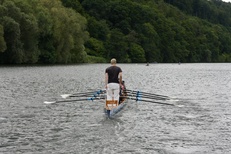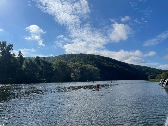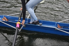 Angekommen stellte man bestürzt fest, dass die Fulda noch etwas warten musste: die Schwimmwesten waren im Bus vergessen worden! Doch die motivierte Gruppe ließ sich davon nicht beirren und nutzte die Zeit für erste theoretische Impulse. Kurz darauf ging es endlich aufs Wasser: voller Vorfreude und Ehrgeiz stiegen die Schüler:innen in die Skiffs (Einer), "Doppelzweier" und "Doppelvierer". Schon bald stellten sich die ersten Erfolge ein, denn die Truppe gab ihr Bestes, um die neue Sportart zu meistern.