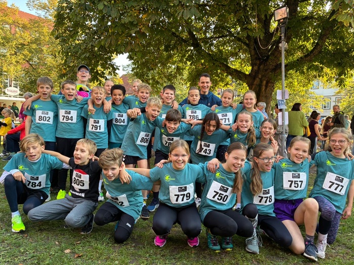 Der Klasse 5c gelang das Kunststück, fast vollständig zum Stadtlauf anzutreten. Inklusive Klassenlehrkräfte-Team Svea Voigt und Till Finkenstädt sowie Maskottchen ging die Klasse ins Rennen. Toll gemacht!