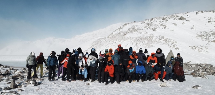 Von Sturm bis Traumwetter ist bislang alles dabei. Hier wagten sich die Teilnehmer:innen der Ski-AG im Sturm bei Windgeschwindigkeiten von 100-150 km/h zu einem kurzen Abenteuerspaziergang aus ihrer Unterkunft auf 2800 m.ü.M.