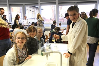 Die Gänge des Corvi gefüllt mit neugierigen Familien. Alle Türen offen, überall Mitmachaktionen aus dem bunten Bildungsblumenstrauß des Northeimer Gymnasiums. Das war der Tag der offenen Tür 2026. Ob Arbeitsgemeinschaften, Sprachen, Naturwissenschaften, Gesellschaftswissenschaften, Musik, Kunst, Theater, Sport, Informatik, Schulsanitäter, Begabtenförderung, Pausengestaltung oder Bücherclub: Es wurde erkundet und ausprobiert. Unzählige Corvi-Lotsen wuselten mit den Grundschüler:innen durch die Corvi-Gebäude, überall fanden Gespräche statt über die Bildungsmöglichkeiten am Corvi, auch im Sekretariat mit Frau Deppe, Frau Dörflinger und Frau Peters, in der Bibliothek mit Herrn Kuschke, im Großen Forum mit Koordinatorin Frau Schatz-Anders und am Kiosk von Frau Hühne. Es war zu spüren und zu erleben, was die Corvi-Schulgemeinschaft ausmacht.