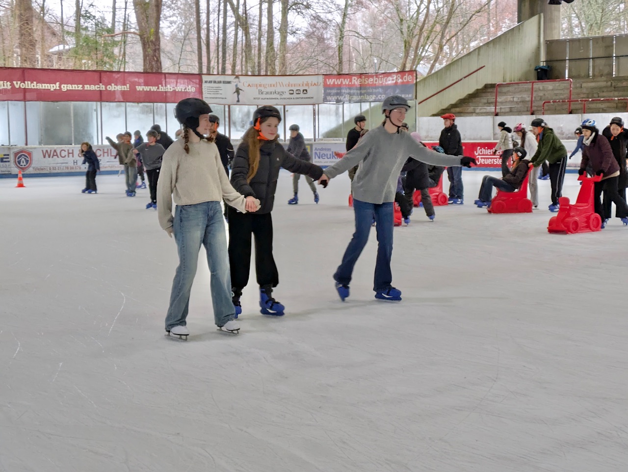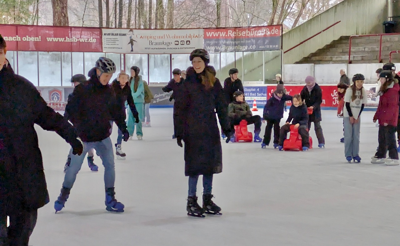 Nachdem das Wetter dem üblichen Programm zum Wintersporttag für die Jg. 8 und 10 einen Strich durch die Rechnung gemacht hatte, fuhren alle Schülerinnen und Schüler gemeinsam nach Braunlage zum Eislaufen. Anfänger wie Fortgeschrittene stellten sich den Herausforderungen und der damit verbundenen Anstrengung, sodass zwei Stunden Spaß auf dem Eis nichts im Wege stand.