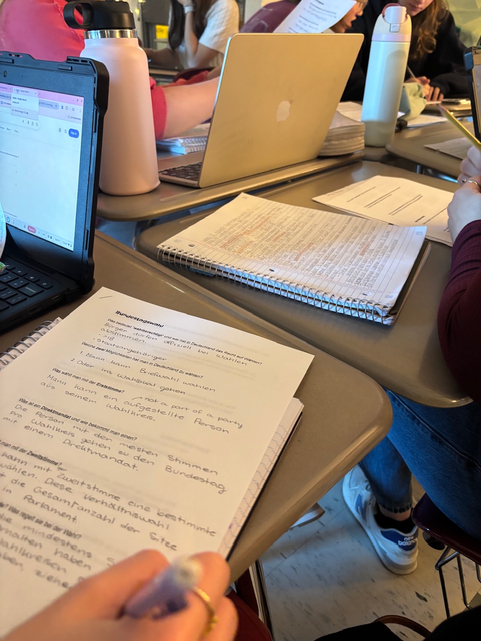 After the morning sessions, we all came together for lunch and exchanged our impressions of the day so far. After that, we visited more classes and continued our presentations, sharing more about German culture.