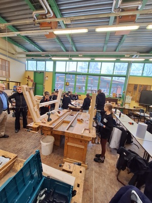 Im Rahmen der Thementage am Corvi nehmen 15 Schüler:innen am Handwerkswettbewerb „MACH WAS!“ teil und verbringen drei aufregende Tage in den Werkstatthallen der BBS 2 in Northeim. Dort lernen sie, große Werkstücke aus Holz zu bearbeiten und zusammenzubauen, so dass am Ende eine Lernlandschaft für unser kleines Forum entstehen wird.
