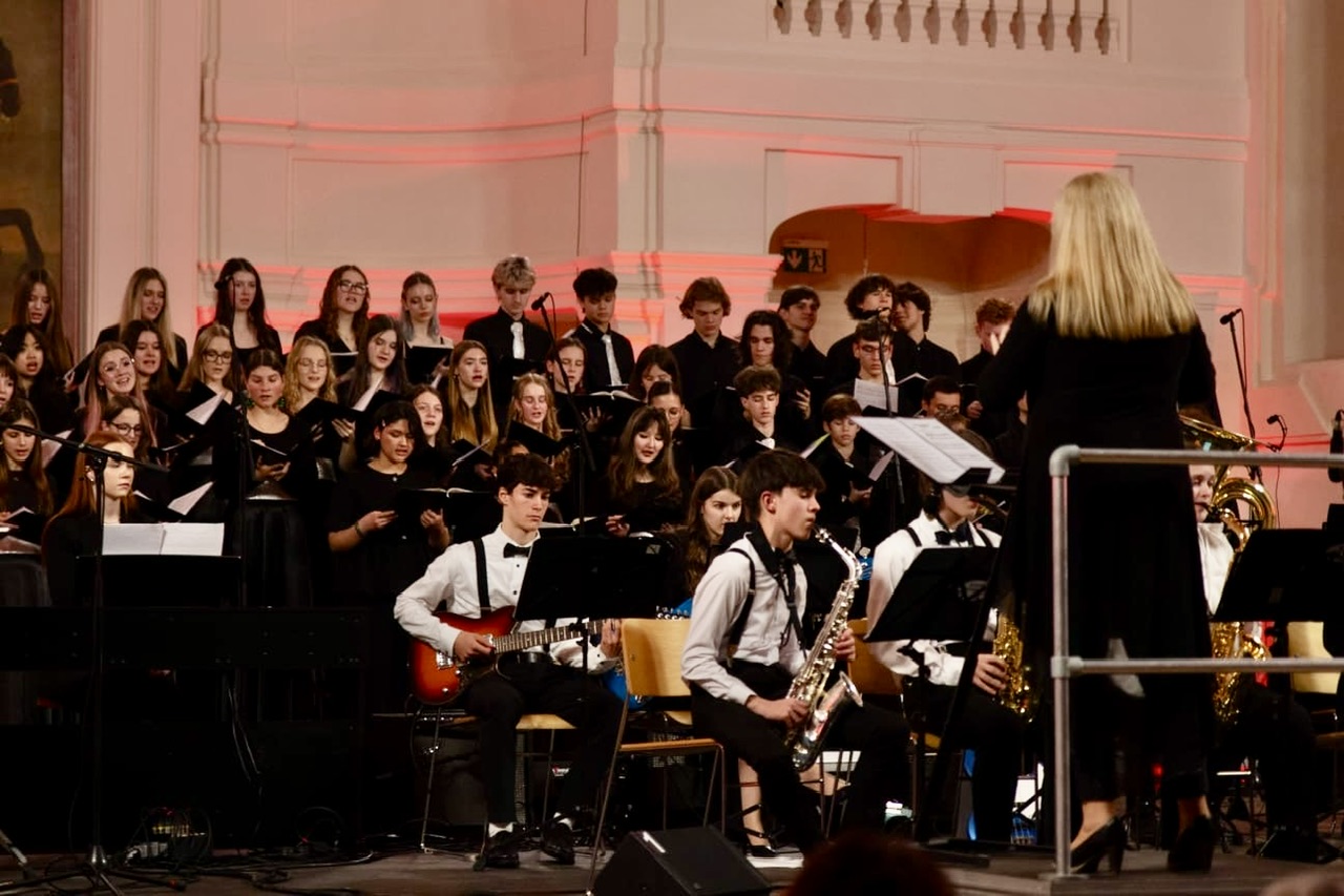 Nach einem erfolgreichen Probentag am Montag machte sich am Dienstag der Chor Ars Musica Vocalis zusammen mit der Jazzband unter der Leitung der Musiklehrkräfte Gregor Wunderlich und Mirko Heimerl auf den Weg nach Tschechien. Um acht Uhr startete der voll beladene Bus am Corvi mit dem ersten Ziel: der tschechischen Hauptstadt Prag. Dort fand noch am Dienstagabend das erste Konzert statt, bei dem neben den beiden musikalischen Gruppen des Corvi auch der Partnerchor Polyfonia aus Břeclav sowie ein Prager Chor auftraten.