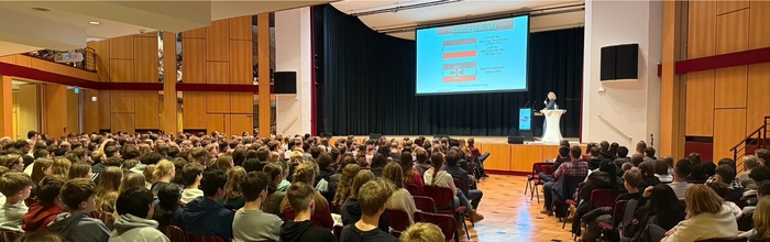 Nahezu 700 Schüler:innen hörten gespannt den Ausführungen der Politikwissenschaftlerin Katrin Himmler zu.
