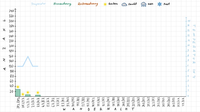 Die erste Wanderwoche zeigte, dass bei trockener Witterung und kalten Nächten nicht viele Amphibien wandern.