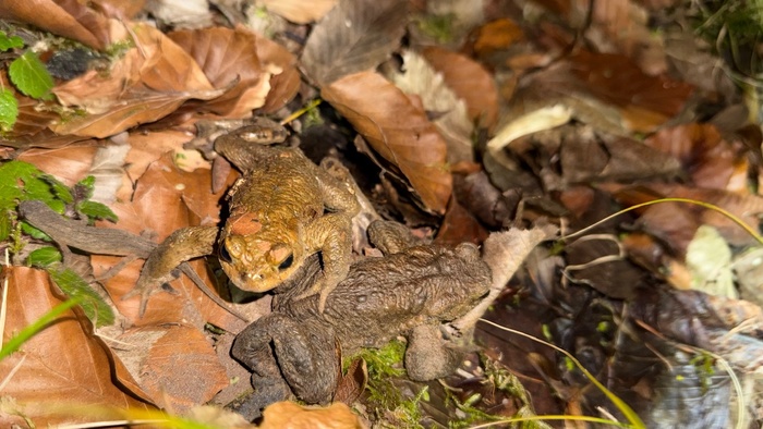 Am Dienstagabend fand Matteo Wolff (Abi 2023) bei 6°C und trockener Witterung 3 Molche und 2 Erdkrötenmännchen auf der Hinwanderung. Er setzte mehrere Eimer auf der Rückwanderung richtig ein und stattete die Eimer mit etwas trockenem Laub zum Schutz der gefangenen Amphibien aus.