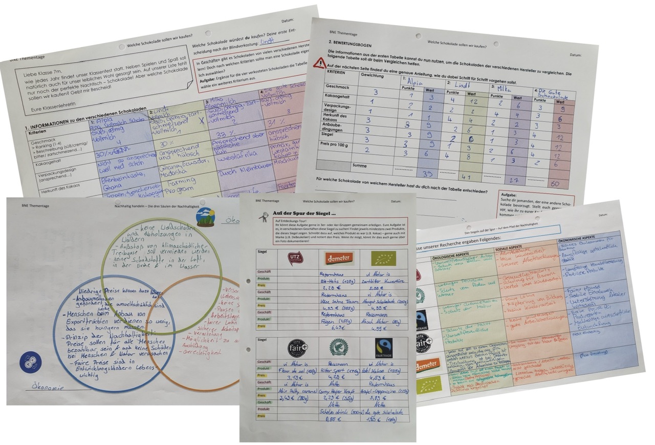 Gestartet haben wir mit einer Blindverkostung von Vollmilchschokoladen verschiedener Marken. Das Ergebnis fiel eindeutig aus. Die Mehrheit stimmte für die Vollmilchschokolade von Lindt. Anschließend haben wir Informationen zu den Schokoladen der verschiedenen Marken wie Kakaogehalt, Preis, Herkunft des Kakaos und Anbaubedingungen recherchiert. Dadurch konnten wir die verkosteten Schokoladen bewerten, indem jede:r für sich die Kriterien gewichtet und bepunktet hat. Nicht selten überraschte das Ergebnis. Nun stand bei vielen „Die Gute Schokolade“ auf Platz 1 – eine Schokolade, die fair und nachhaltig produziert wird.